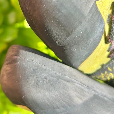 We offer various rubber compositions. Vibram™ includes 'Grip,' which is a supportive rubber, 'XS Edge' which is a hard rubber great for edging, and 'XS Marchiata' (aka 'XS Flash') which is new to the market. It is a flexible rubber meant specifically for gym climbing.